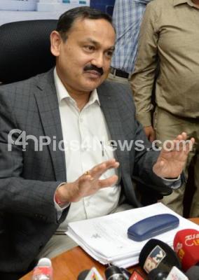 Photo Caption : Sanjiv Kumar, Chief Electoral Officer addressing press conference at Election Commissioner office, in Bengaluru on Tuesday 27th March 2018