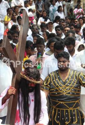 Photo Caption : Christian devotees enact scenes from the crucifixion of Jesus Christ on the Eve of Good Friday, at St Francis Xaviers Cathedral Church, in Bengaluru on Friday 30th March 2018