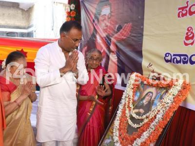 Photo Caption : MLA Dinesh Gundurao with Umadevi, President, Sri Akka Mahadevi Seva Samaja and Susheela Devi Rajanna, Secretary offering floral tribute to Shiva Shiva Sharane Akkamahadevi portrait during her jayanti celebrations at Akkipete Samaja, in Bengaluru on Saturday 31st March 2018