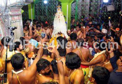 Photo Caption : Devotees participate in Karaga Procession in the early hours, celebrating Bangalore Karaga Festival, at Dharmarayaswamy Temple, in Bengaluru on Sunday 1st April 2018