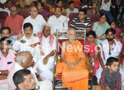 Sri Vishweshwara Theertha Swamiji and Brahmana Mahasabha leaders at a meeting for the upcoming Assembly elections at TTD temple, in Bengaluru on Sunday 1st April 2018