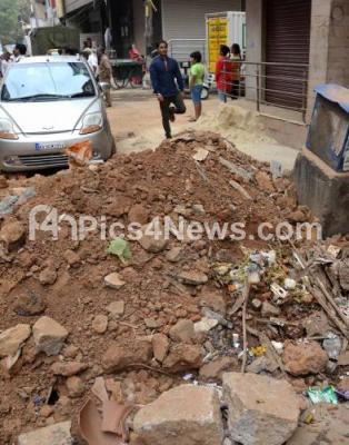 Photo Caption : Debris being dumped on road side near BVK Iyenger Road, in Bengaluru on Monday 2nd April 2018
