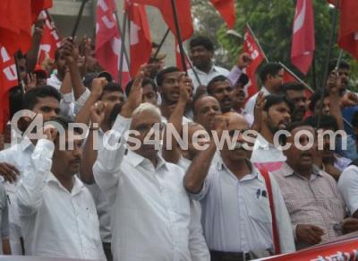 Members of CITU staged a protest against the anti labour policies of the central government at Town Hall, in Bengaluru on Monday 2nd April 2018