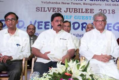 Photo Caption : Dr D Veerendra Heggade, Dharmadhikari seen with Wooday P Krishna and others seen at the Silver Jubilee Anniversary Celebrations of Sheshadripuram First Grade College at Yelahanka, in Bengaluru on Friday 6th April 2018