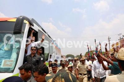Photo Caption : Congress president Rahul Gandhi seen at the road show during his visit in Kolar district on Saturday 7th April 2018