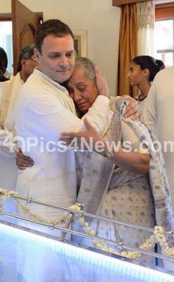 Event Description : AICC President Rahul Gandhi paying his last respect to Niranjan Alva, husband of Former Governor Margaret Alva with Chief Minister of Karnataka Siddaramaiah and State congress leaders, in Bengaluru on Sunday 8th April 2018