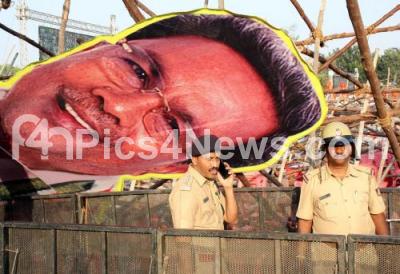 Photo Caption : Tight police security at the Congress Rally “ Jana Ashirwada Yatra†at Palace Grounds, ahead of the Karnataka Assembly Elections, in Bengaluru on Sunday 8th April 2018