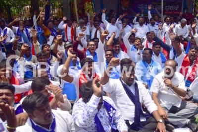 Photo Caption : Members Dalita Sangharsh Samiti protesting against the Supreme Court Ruling on SC ST Act at Anand Rao Circle, in Bengaluru on Monday 9th April 2018
