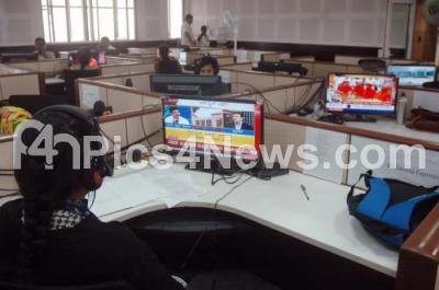 Photo Caption : BBMP officials at the MEDIA CONTROL CENTRE working round the clock at BBMPP Head Office, to monitor the illegal poll advertisements ahead of the Karnataka Assembly Elections, the Media control and Monitoring Committee headed by BBMP Commissioner Manjunath Prasad to scrutinise all local National News Channels, Newspapers, Radio and social media for any violation of model code of conduct during the elections in the city, in Bengaluru on Tuesday 10th April 2018