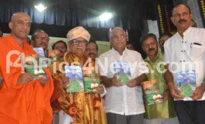 Photo Caption : Sri Nirmalananda Swami of Adichunchanagiri Mutt with Justice Gopalagowda and others felicitated Dr Doddarangegowda and released his books during a program at Kannada Sahitya Parishat, organised by Vishwa Okkaligara Mahavedike, in Bengaluru on Tuesday 10th April 2018