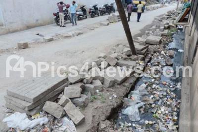Photo Caption : Bad drainage system at Nayandahalli, Pantharapalya, Govindraj Nagara assembly constituency, in Bengaluru on Thursday 12th April 2018