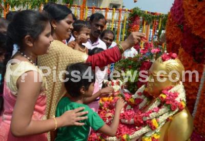Photo Caption : People tribute to Dr BR Ambedkar Statue on the occasion of Dr BR Ambedkar Jayanti at Vidhan Soudha, in Bengaluru on Saturday 14th April 2018