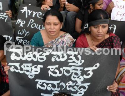 Photo Caption : Various organisations members protesting against the brutal rape and murder case of 8 year old girl Asifa, from Kathua in Jammu and Kashmir and demanding for justice, the protest held at Town Hall, in Bengaluru on Monday 16th April 2018