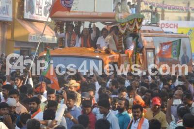 BJP National President Amit Shah with BJP State President BS Yeddyurappa, Union Minister DV Sadananda Gowda, Sharath Bachegowda and others seen campaigning for the Karnataka Assembly Elections at Hoskote, in Bengaluru on Wednesday 18th April 2018