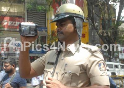 Photo Caption : Police recording the visuals for safety precaution during MLA candidates filing nominations at Jayanagar BBMP office, in Bengaluru on Thursday 19th April 2018