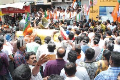 Jayanagar MLA Candidate from BJP, Vijaya Kumar during the road show with his supporters before filing his nominations at Jayanagar BBMP office, in Bengaluru on Thursday 19th April 2018