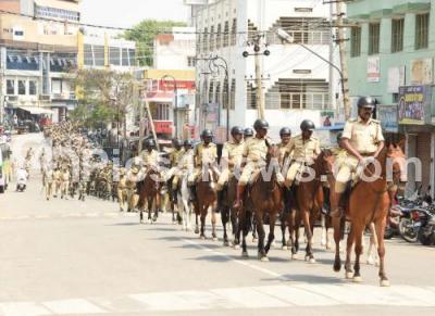 Event Description : Police, CRPF and other personnel participated in a flag march for the upcoming Assembly Elections at Udayagiri Constituency in Mysuru on Saturday 21st April 2018