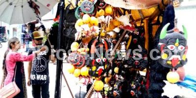 Photo Caption : A vendor selling demon masks, which are used widely by people for their superstitious beliefs, in Bangalore on Sunday 22nd April 2018