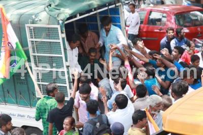 Event Description : People rushing to collect water bottles during road show of Vijaya Nagar MLA Candidate from Congress, M Krishnappa, in Bengaluru on Monday 23rd April 2018