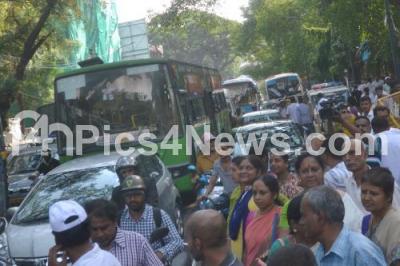 Photo Caption : Heavy traffic jam at Residency Road due to election campaigns, in Bengaluru on Monday 23rd April 2018