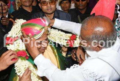 Mayawati, Former Chief Minister of Uttar Pradesh and BSP Leader being welcomed by JDS MLA GT Devegowda during election campaign, in Mysuru on Wednesday 25th April 2018