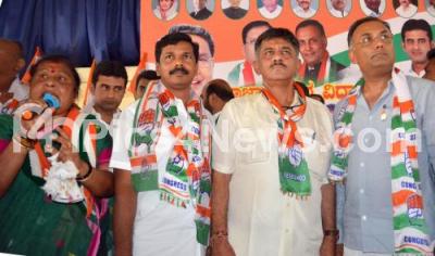 Photo Caption : Minister DK Shivakumar with MLA Dinesh Gundu Rao and G Padmavathi, Rajajinagar assembly constituency Congress candidate and congress leaders during Congress workers meeting for upcoming assembly election at Rajaji Nagar, in Bengaluru on Wednesday 25th April 2018