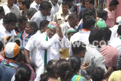 Photo Caption : KJ George Congress candidate for Sarvagna Nagar assembly constituency campaigning with his supporters, in Bengaluru on Saturday 28th April 2018