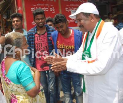Photo Caption : KJ George, Congress candidate for Sarvagna Nagar Assembly Constituency campaigning with his supporters, in Bengaluru on Monday 30th April 2018