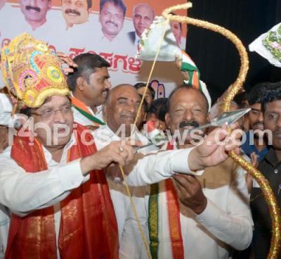 Photo Caption : Ministers M R Seetaram, Roshan Baig with Andhra Pradesh Congress committee president Raguveer Reddy, AP former Ministers and MLAs during Telugu Association meeting at Chowdaiah Memorial Hall, in Bengaluru on Monday 30th April 2018