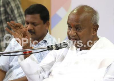Photo Caption : Former PM and JDS Supremo, HD Devegowda, addressing press conference during the meet the press programme at Press Club, in Bengaluru on Wednesday 2nd May 2018