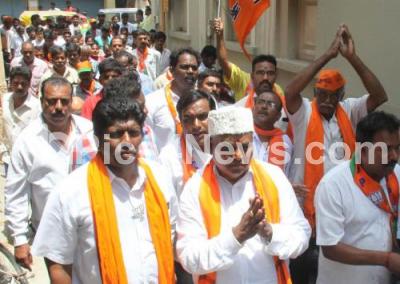 Photo Caption : Katta Subramanya Naidu, BJP candidate for Shivajinagar Assembly Constituency campaigning with his supporters, in Bengaluru on Wednesday 2nd May 2018