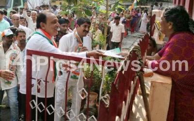 Event Description : Krishnappa, Congress candidate for Vijayanagar Assembly Constituency campaigning with his supporters, in Bengaluru on Wednesday 2nd May 2018