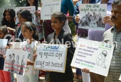 Event Description : Members of Children Rights Initiative for Shared Parenting (CRISP) hold placards as they demand to all political parties to include the fundamental rights issues in their Election manifesto ahead of the Karnataka Assembly Election 2018, in Bengaluru on Friday 4th May 2018