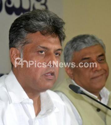 Event Description : Manish Tewari, Former Union Minister addressing press conference with Rajya Saba Member Rajiv Gowda at KPCC, in Bengaluru on Friday 4th May 2018
