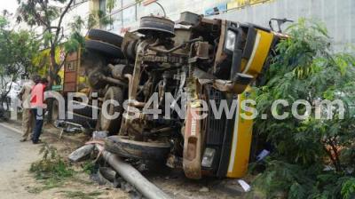 Photo Caption : A lorry toppled at Ramamurthy Nagar in the early hours, in Bengaluru on Saturday 5th May 2018