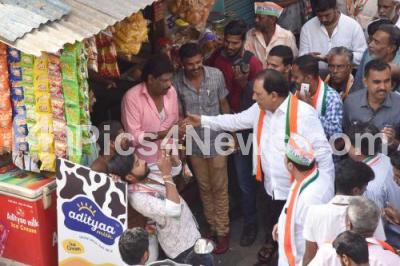 Event Description : M Krishnappa, Congress candidate for Vijayanagar Assembly Constituency campaigning with his supporters, in Bengaluru on Saturday 5th May 2018