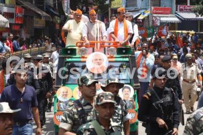 Union Home Minister Rajnath Singh and Union Minister Ananth Kumar campaigning for Uday Garudachar, BJP candidate for Chickpet Assembly constituency election campaign at Chickpet, in Bengaluru on Sunday 6th May 2018