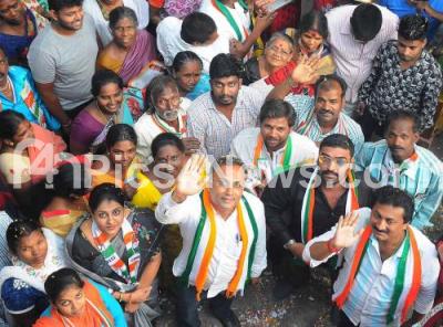Photo Caption : Dinesh Gundu Rao, Congress candidate for Gandhinagar Assembly Constituency campaigning with his supporters, in Bengaluru on Tuesday 8th May 2018