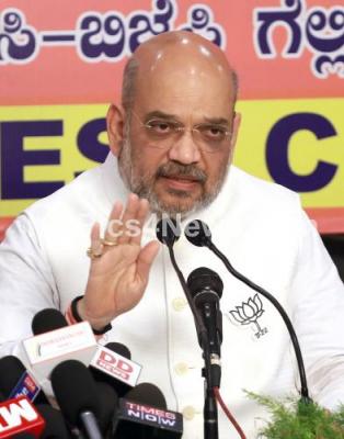 Photo Caption : BJP President Amit Shah addressing press conference ahead of Karnataka assembly election at a hotel, in Bengaluru on Thursday 10th May 2018