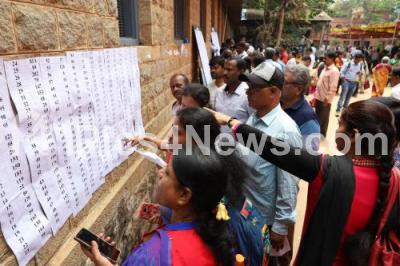 Photo Caption : Electoral Officers checking the polling booth list ahead of Karnataka Assembly Elections at Malleshwaram Government College, near Freedom Park, in Bengaluru on Friday 11th May 2018