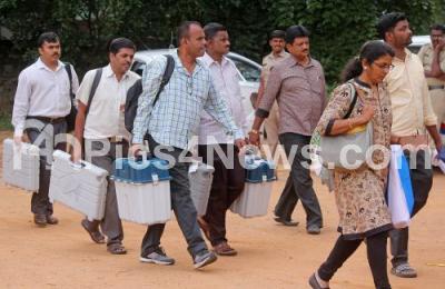 Photo Caption : Electoral Officers departing to their respective polling booths ahead of Karnataka Assembly Elections from Malleshwaram Government College, in Bengaluru on Friday 11th May 2018