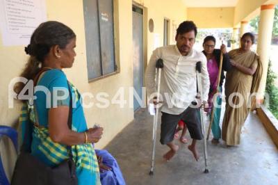 Photo Caption : Physically Challenged arriving after casting their vote at the voting centre at Ramasandra, Govt School, in Bengaluru on Saturday 12th May 2018