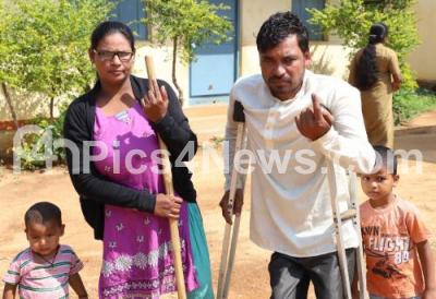 Photo Caption : Physically Challenged couple happily flashing the voting ink mark after casting their vote at the voting centre at Ramasandra, Govt School, in Bengaluru on Saturday 12th May 2018