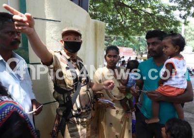 Photo Caption : Indian Reserve 11th Battalion giving instructions to the voters at the voting centre at Srirampura, in Bengaluru on Saturday 12th May 2018
