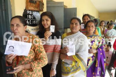 Photo Caption : People casting their votes at the voting centre at Srirampura, in Bengaluru on Saturday 12th May 2018