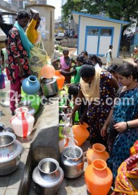 Event Description : Residents of Nayandahalli , Mysuru Road rushing at the public water tap to fill the water, in Bengaluru on Sunday 13th May 2018