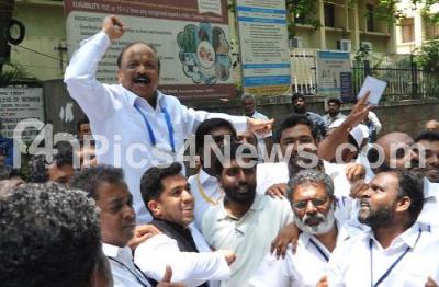 Photo Caption : Congress candidate from Shivajinagar Roshan Baig celebrate after winning 2018 assembly elections, in Bengaluru on Tuesday 15th May 2018