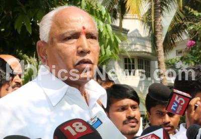 BJP State President BS Yeddyurappa addressing press conference at his residence after the assembly elections results, in Bengaluru on Tuesday 15th May 2018