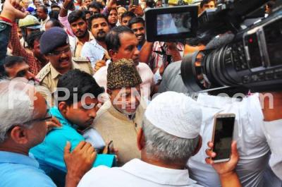 Photo Caption : Congress senior leader CK Jaffer Sharief seen at the residence of JDS Supremo and leader HD Devegowda at Padmanabhanagar, for talks on forming coalition government in Karnataka government, in Bengaluru on Tuesday 15th May 2018