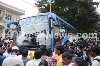 Congress MLAs leaving to resort in the bus which came to pick up the Congress MLAs at Congress office, in Bengaluru on Wednesday 16th May 2018
